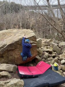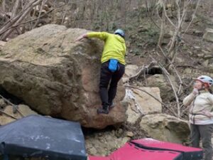 午後からは、妙号岩のレジェンドと一緒にボルダリングの練習です。