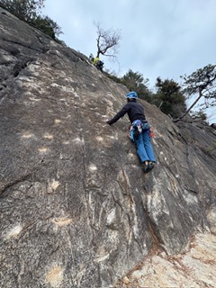 午前中は、妙号岩でロープワークを中心にマルチピッチクライミングと懸垂下降の練習です。