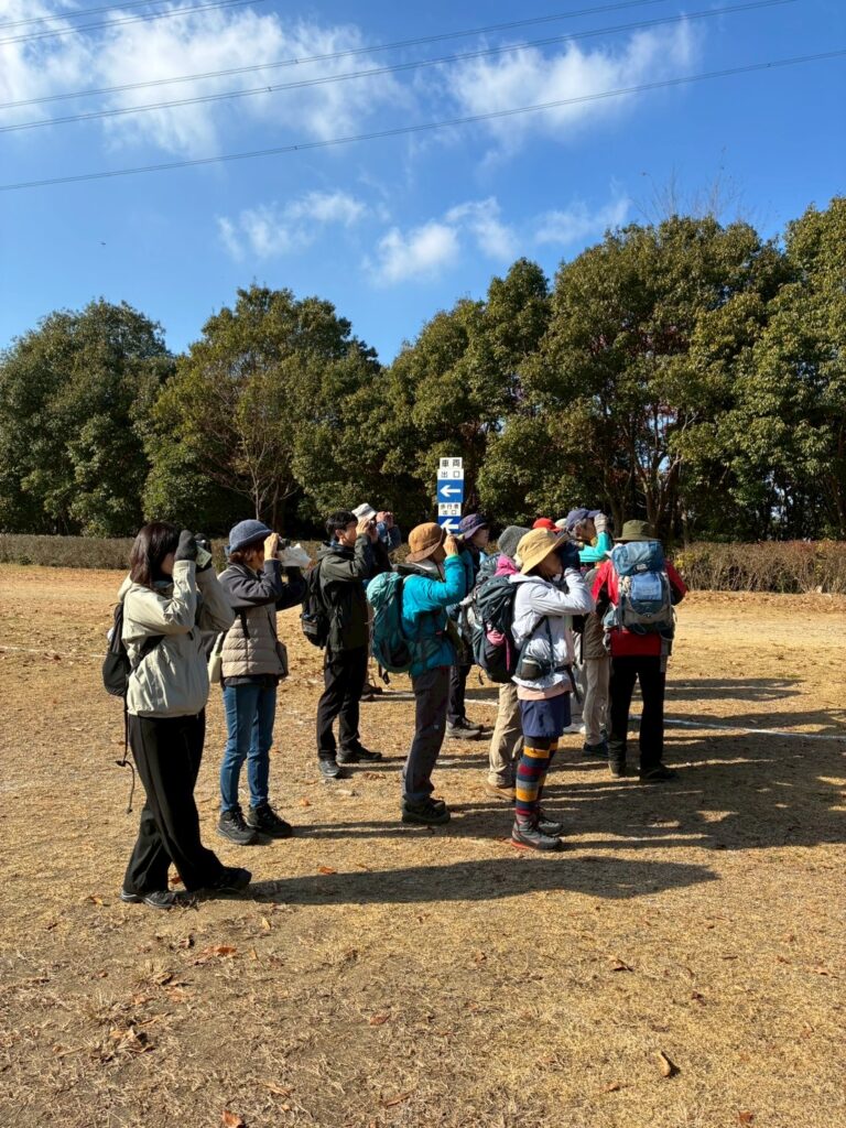 バードウォッチング、初体験の方も多く双眼鏡の使い方やスマホを使っての野鳥の鳴き声や特徴をつかんでの判別の仕方等、講習を受け実際に野鳥観察をしました。暖かい日和で鳥も動きが有り、初めにハクセキレイを発見、動きを追いながら皆満足でした。その後ツグミ、ヒヨドリ、コゲラなどを観察出来ました。