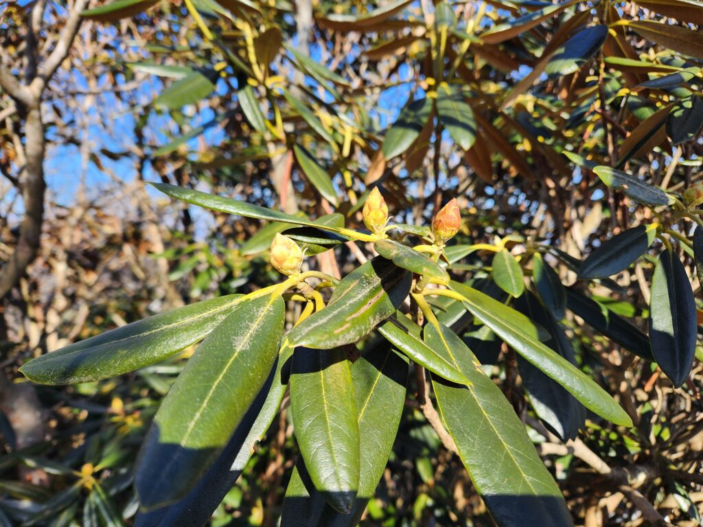 頂上付近にシャクナゲの群生 蕾をつけて春を待っています。