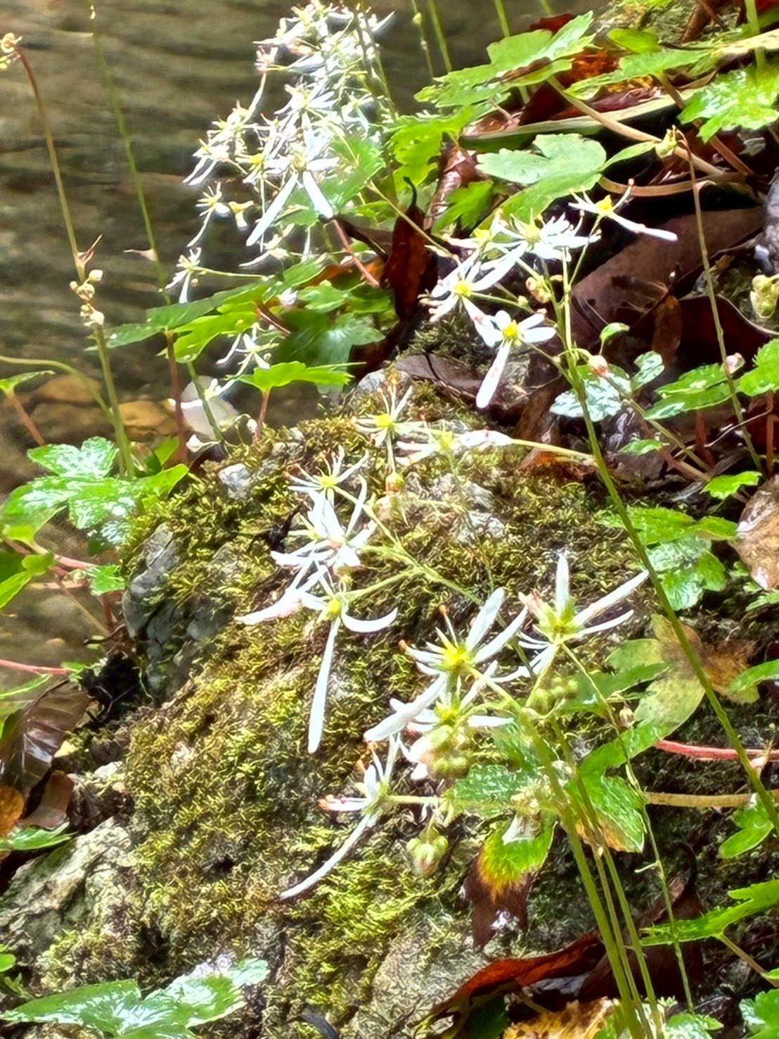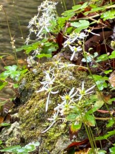 屏風岩の近く、大文字草の群生地に到着。花はちょうど見頃だった。大文字草の花は清楚で控えめだけど、水辺の崖地に咲くなんて根性がある。
