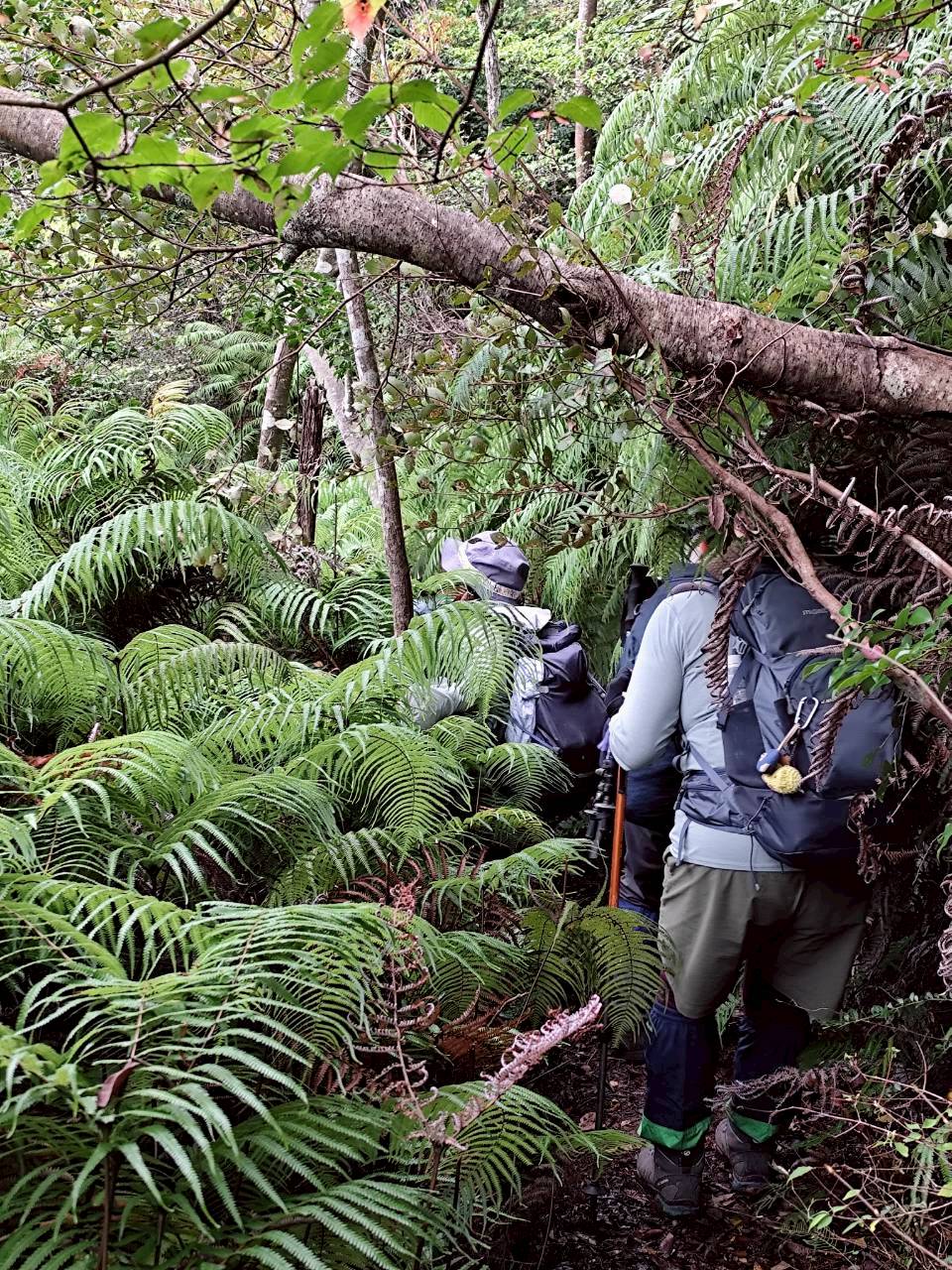 地図を広げてルートを確認。前日の雨でちょっと増水。倒木多数で荒れた登山道を道を捜しながら進む。
