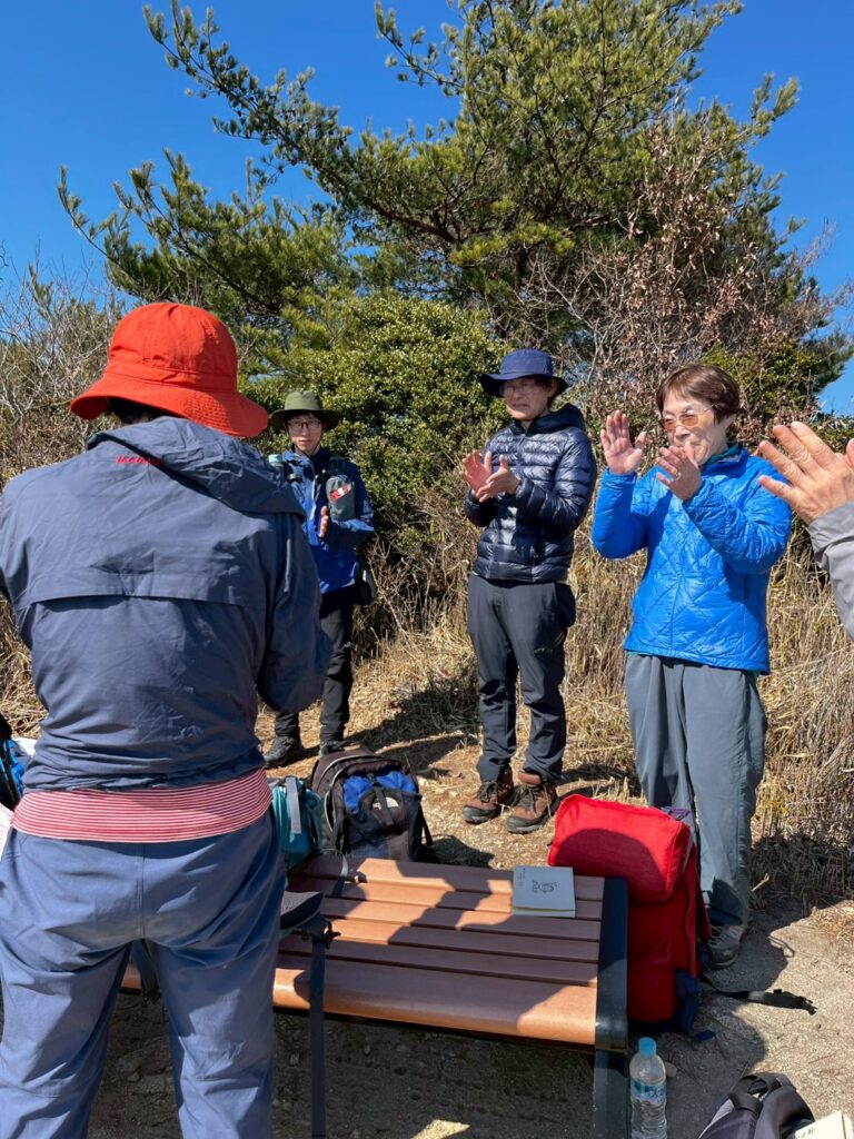 今日は、Fさんの78歳のお誕生日。山頂から小菊水山に移動し、みんなでハッピーバースデーを歌いお祝いした!われら10名とほかの登山客も手拍子で参加してくれた。Fさんは明るい笑顔と大きな笑い声でいつもその場を明るくしてくれる。これからもお元気で、いっしょに山を歩きましょう!!