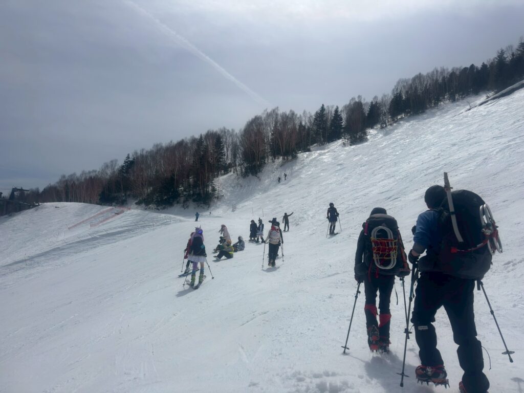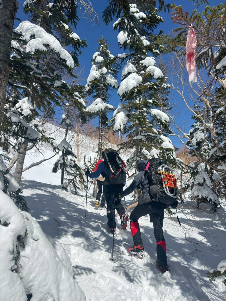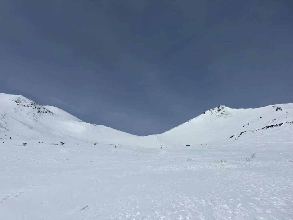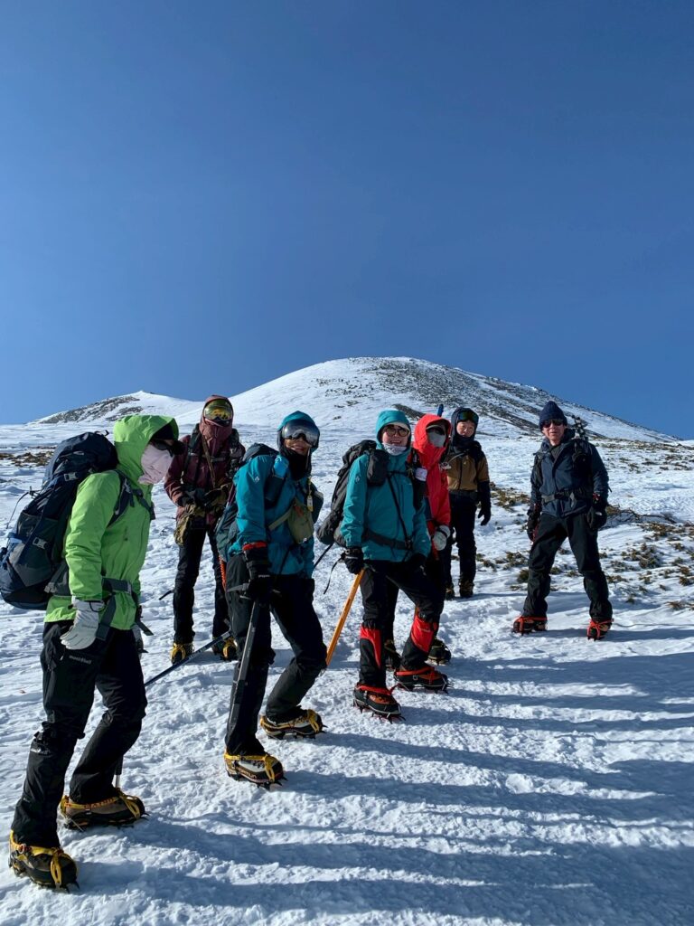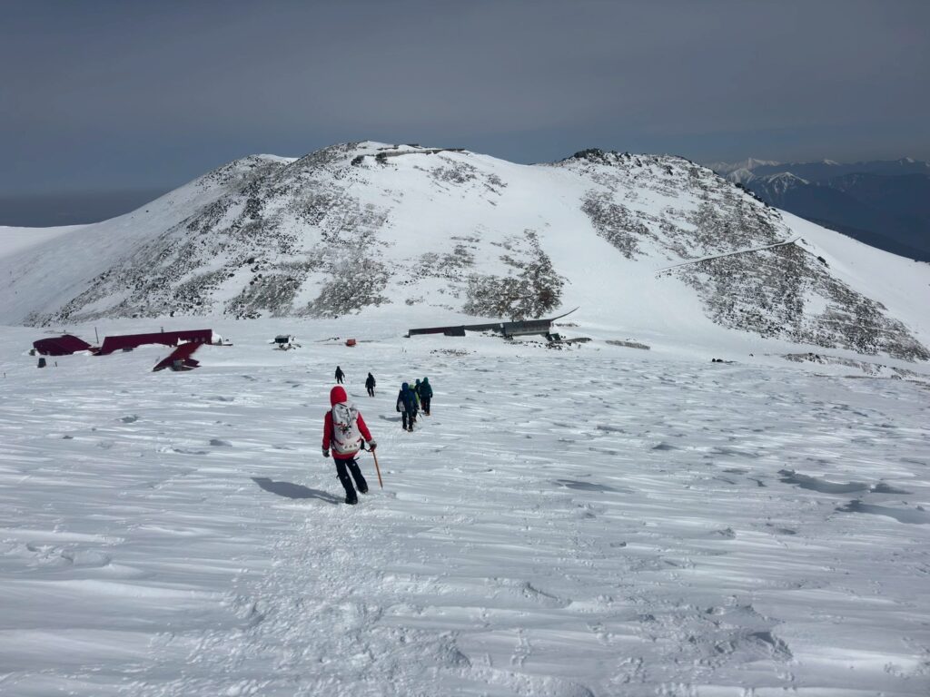 2025年度雪山登山教室修了後の第1回目の雪山登山として、乗鞍岳に挑戦。登頂の日は前日の強風も弱まり、広大な雪渓、北アルプスの山々や御嶽山など周囲の雪山の美しい景色を堪能できた。午後から天気は下り坂だったので本当に幸運だった。下山中、雪渓を歩いていると、突然のけたたましい轟音に”雪崩か!”と肝を冷やすというハプニングがあった。(実はジェット戦闘機が猛スピードで稜線をかすめるように飛び去った音であることが2機目で判明)今回、雪道は迷いやすく慎重な判断を要することを身をもって経験。また、雪崩の痕跡を見たり、参加者の直前キャンセルによる役割変更にもチームワーク良くスムーズに事が運んだことなど、いい経験をさせて頂いた。