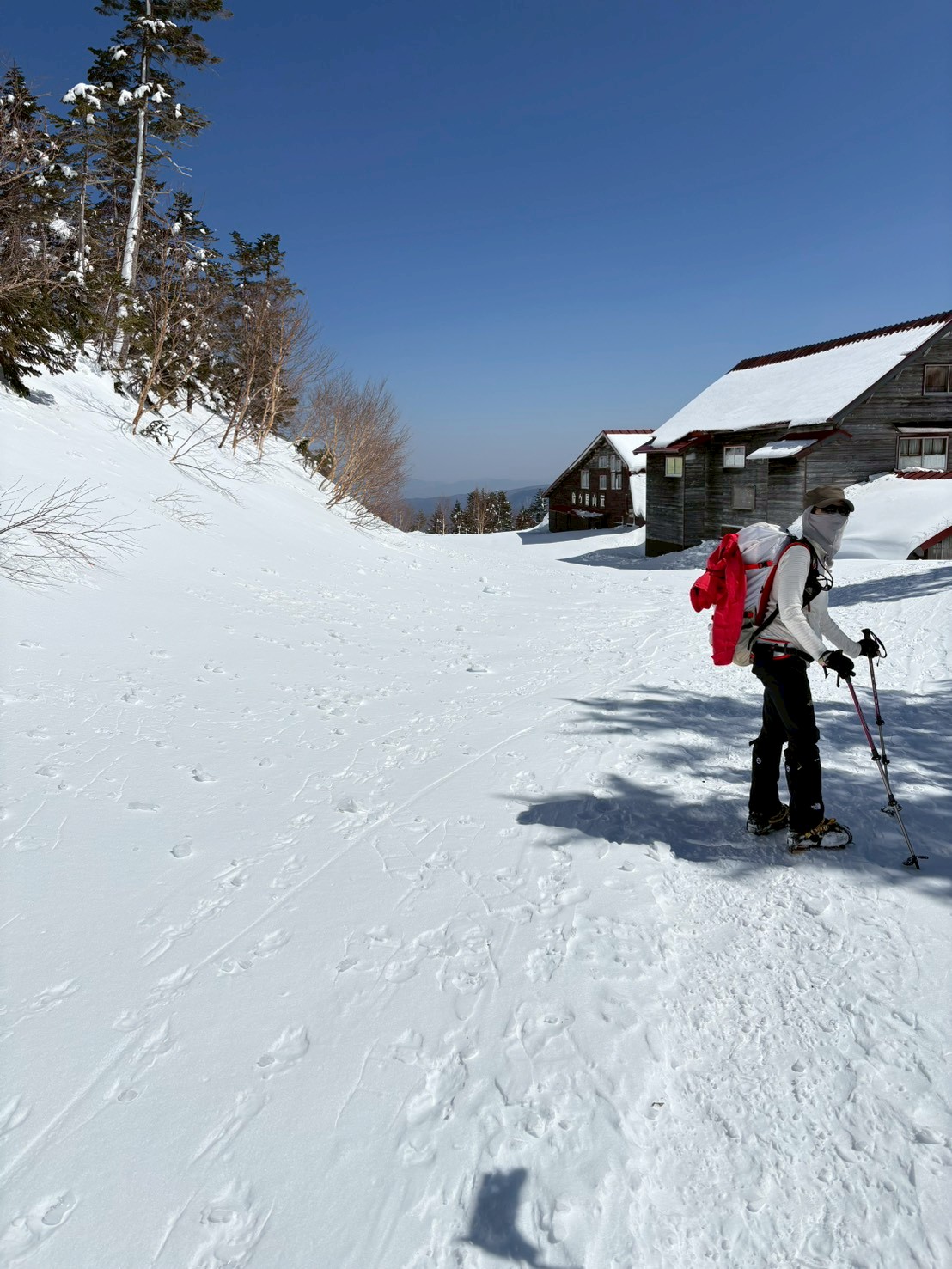 山荘を出発する際にアプリをリスタートしたつもりだったが一時停止のままで、それに気づいたのは下山後だった。スマホはゴーグルをすると画面が見にくい、手袋すると扱いにくいのが難点。