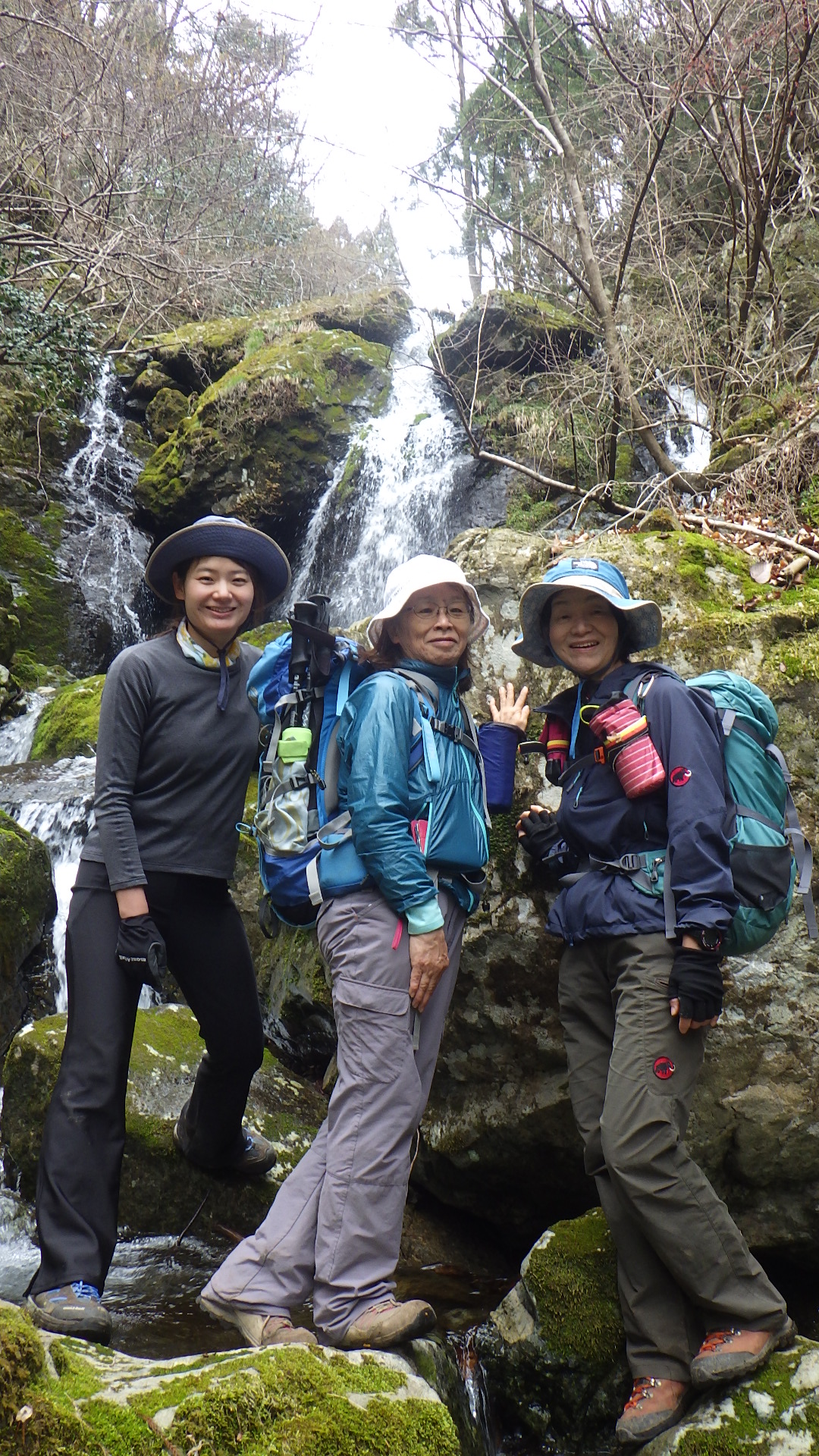 月曜日のためか、コロナのためか、駐車場には我々の車以外1台もない。登山口にも誰も居ない。今回は坂根登山口(キャンプ場)から大天井岳、雪彦山、鉾立山とグルリ一周の縦走コース。前回は大天井岳を越えて虹ゖ滝に降りるコースでロープや鎖を楽しんだが、時間切れで引き上げたので、今回は一周コースを選択。登山口から展望岩辺りまでは厳しい急登が続くが、その後の迫力のある出雲岩やセリ岩では、岩山の面白さを味わえる。大天井岳に到着しても誰も居ない。前回は主のようなオジサンがバッチを売っていた。雪彦山、鉾立山と回っても誰とも会わない。遠くに雪が残った氷ノ山が見える。南には小さく明石海峡大橋、淡路島が見渡せる。ジャンクションピーク以降は倒木が多い。滝や沢の綺麗で次第にが魅力を増してくる。ロープを使って滑りやすい岩をクリアし滝の前まで降りる。気持ち良く皆な大はしゃぎ。虹ヶ滝辺りで一服していたら、今日初めて人に出会った。