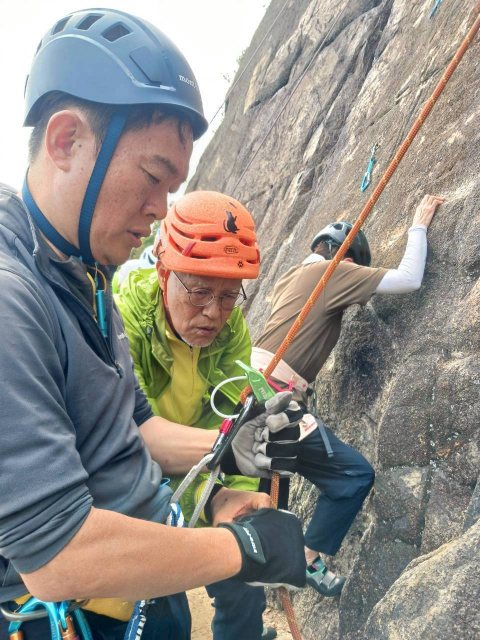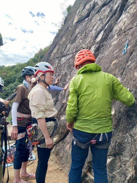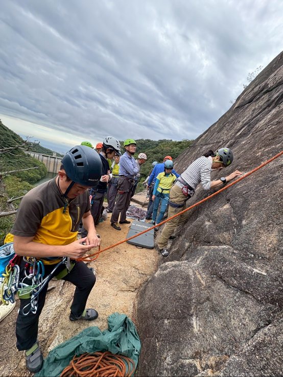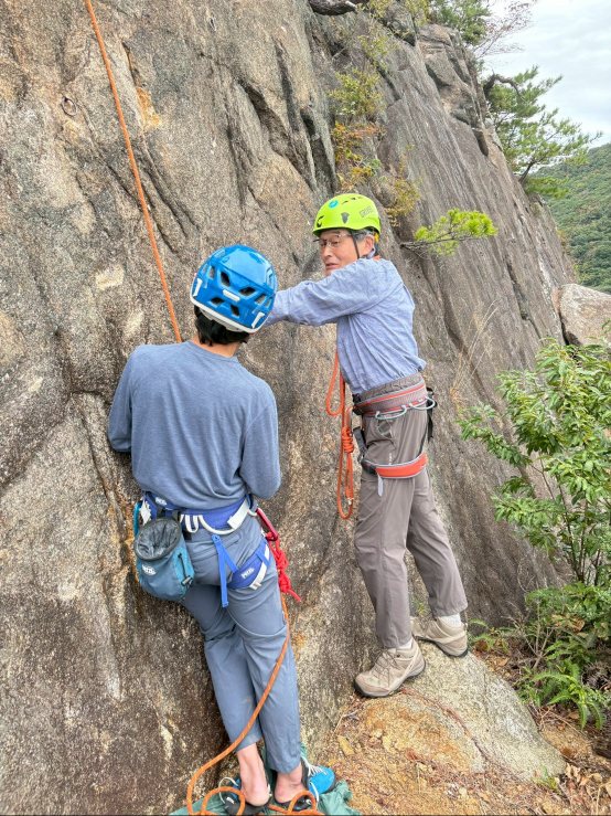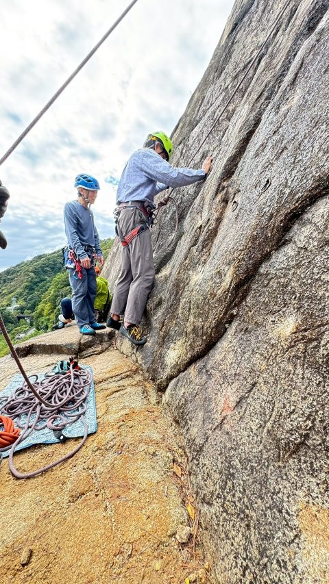 タイミング良く兵庫県山岳連盟のNさんの指導の下、Mさんはじめ参加者の皆もクライミングをする上での課題とステップアップに役立つトレーニング(トラバース練習)