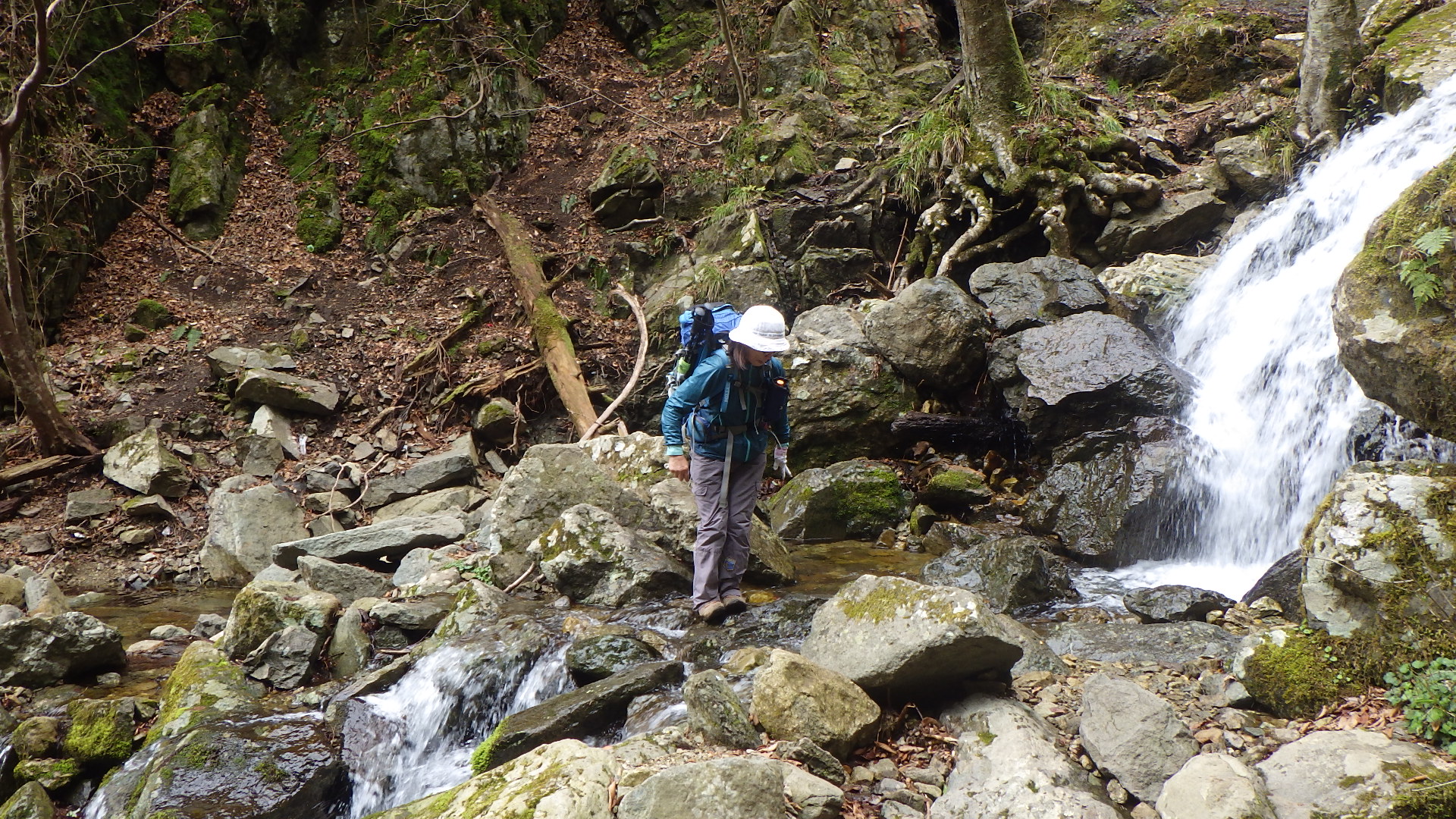 月曜日のためか、コロナのためか、駐車場には我々の車以外1台もない。登山口にも誰も居ない。今回は坂根登山口(キャンプ場)から大天井岳、雪彦山、鉾立山とグルリ一周の縦走コース。前回は大天井岳を越えて虹ゖ滝に降りるコースでロープや鎖を楽しんだが、時間切れで引き上げたので、今回は一周コースを選択。登山口から展望岩辺りまでは厳しい急登が続くが、その後の迫力のある出雲岩やセリ岩では、岩山の面白さを味わえる。大天井岳に到着しても誰も居ない。前回は主のようなオジサンがバッチを売っていた。雪彦山、鉾立山と回っても誰とも会わない。遠くに雪が残った氷ノ山が見える。南には小さく明石海峡大橋、淡路島が見渡せる。ジャンクションピーク以降は倒木が多い。滝や沢の綺麗で次第にが魅力を増してくる。ロープを使って滑りやすい岩をクリアし滝の前まで降りる。気持ち良く皆な大はしゃぎ。虹ヶ滝辺りで一服していたら、今日初めて人に出会った。