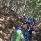 気持ちのいい歩きやすい道を登ると1時間程で金山頂上。金山城は明智光秀が築いたお城だそう。今は石垣が残るだけ
